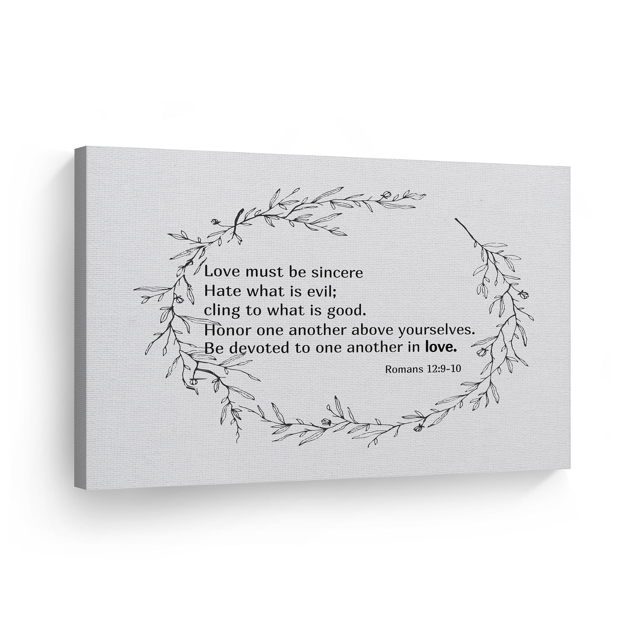 Smile Art Design Romans 12 9 10 Love Must Be Sincere Quote Scripture Wall Art Bible Verse Canvas Print Rustic Home Decor Ready To Hang Made In The Usa 19x28 Walmart Com